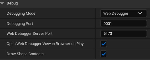 To specify the port number used by the web server and web debugger interface (client), select Edit > Project Settings... > Plugins > AGX Dynamics and look under the Debug category.